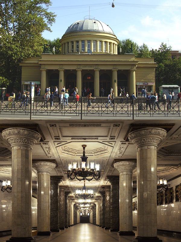 Станция метро «Автово» построена по проекту архитекторов А. А. Грушко и Е. Н. Левинсона, инженера С. М