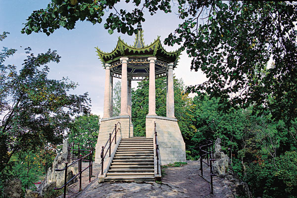В западной части Нижнего парка, напротив пруда, у которого заканчивается Марлинская аллея, симметрично «Шахматной горе» расположено ещё одно выдающееся фонтанное сооружение – каскад «Золотая гора».