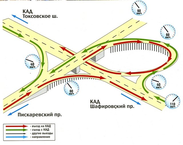 Развязка, созданная на этом участке, является Т-образной, а также сделана из двух уровней, что является удобным решением для кольцевой автомобильной дороги. Для водителей данный участок не представляет опасностей, так как дорога строилась относительно недавно и создана с употреблением новейших