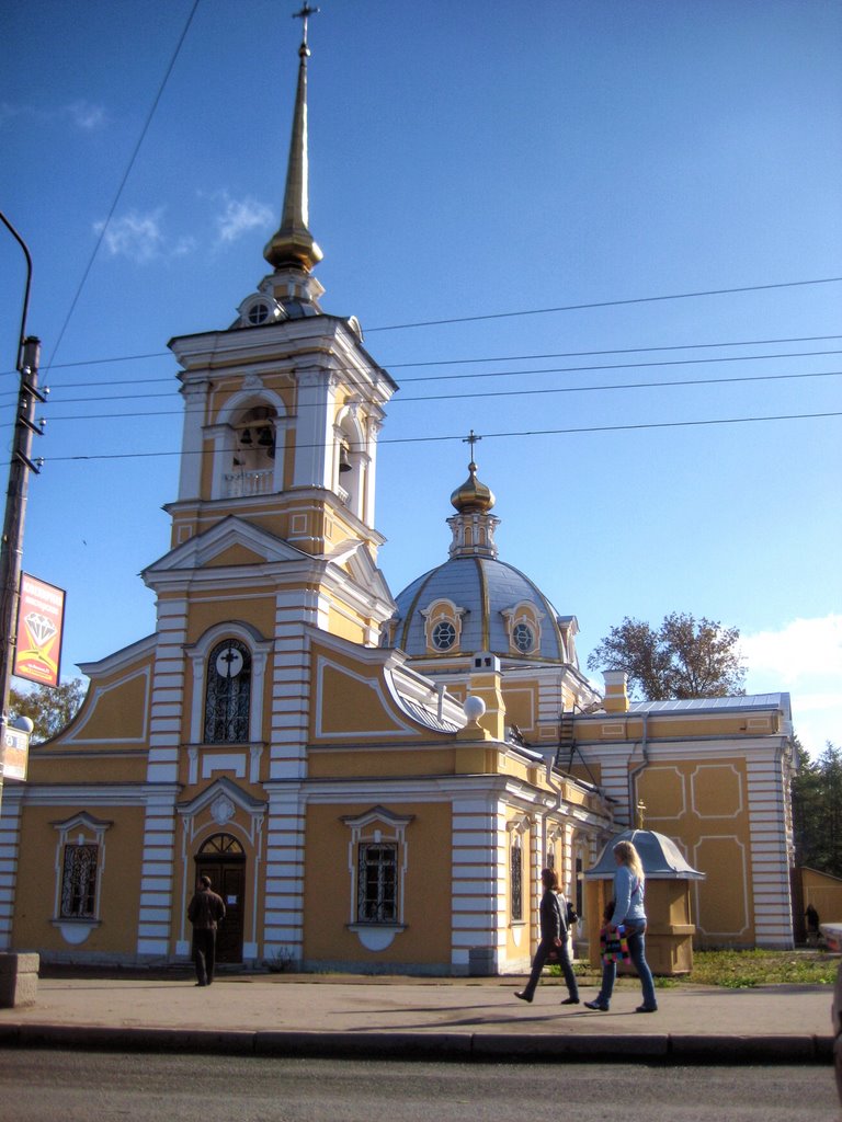 Церковь Троицы Живоначальной расположена по проспекту Ленина, 108 в Красносельском районе Санкт-Петербурга.