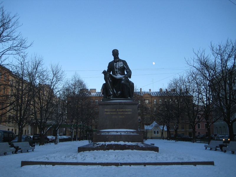 На Театральной площади в сквере у Консерватории, невозможно не пометить архитектурную памятку, которая возведена в честь памяти великого композитора Николая Андреевича Римского-Корсакова. Римский-Корсаков Николай Андреевич (1844-1908). Композитор, педагог, дирижер. Окончил Морской кадетский корпус